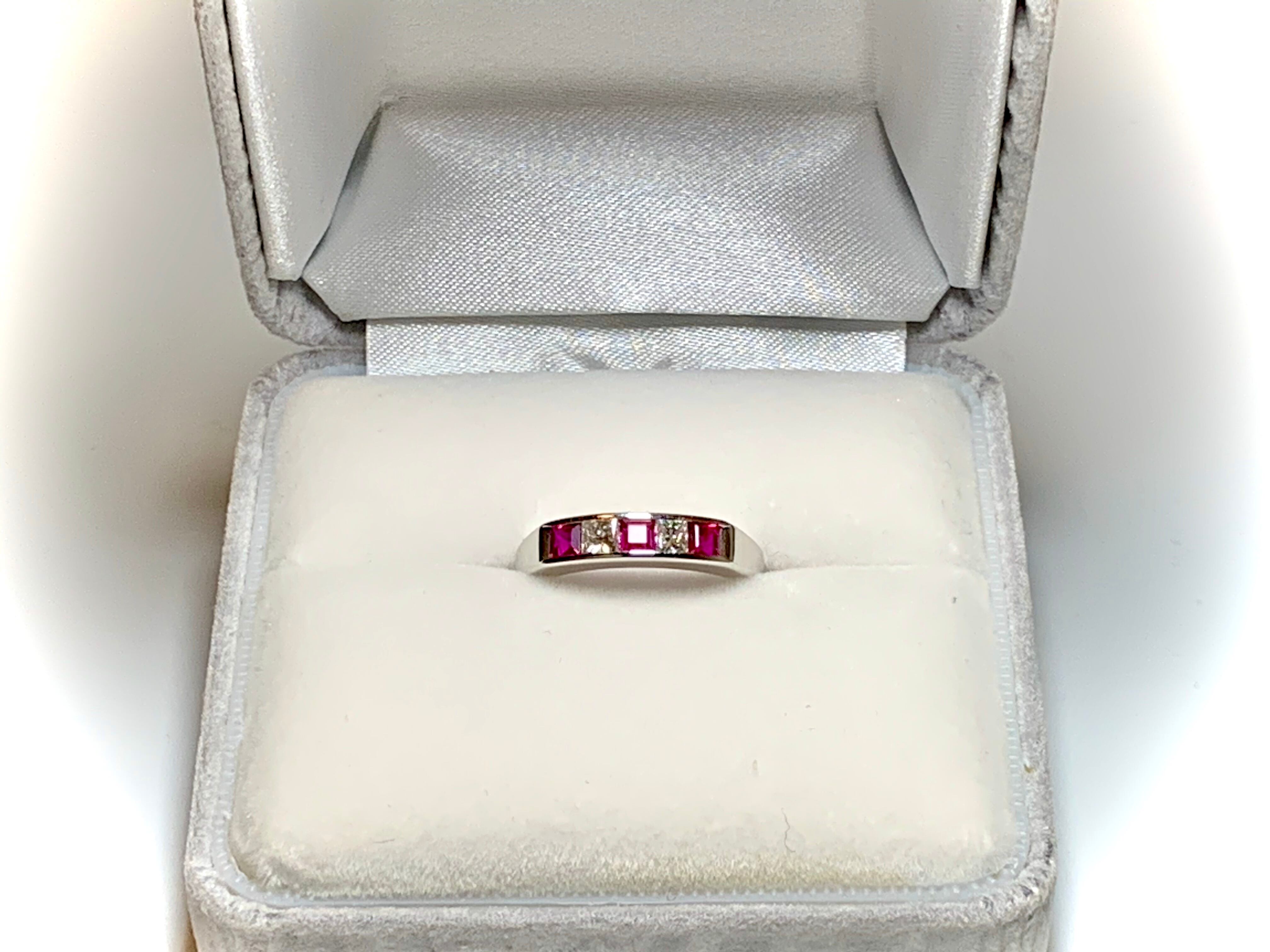 ルビーとダイヤを交互に配した人気の一文字デザインリング。