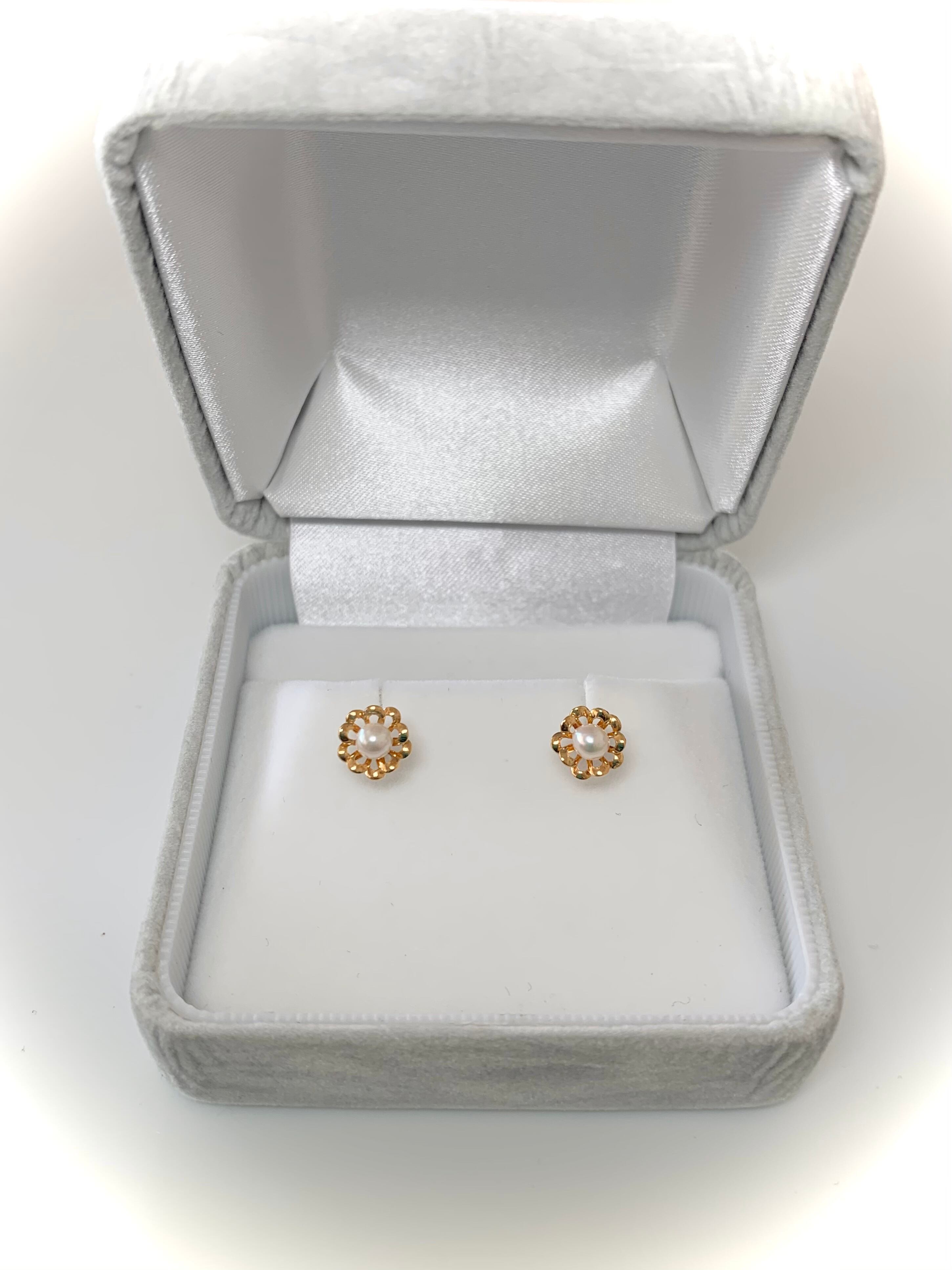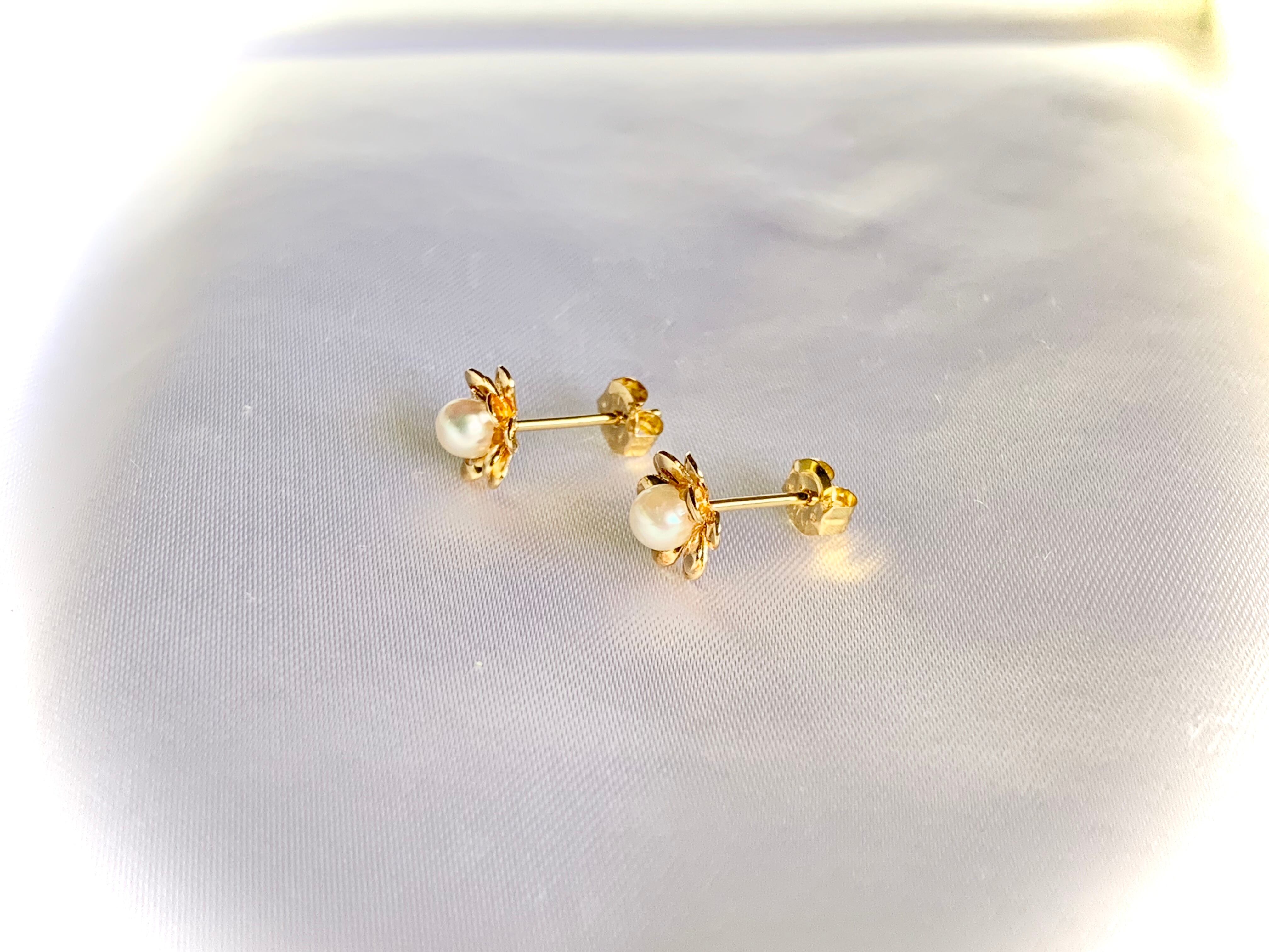 [3mm Akoya pearl petal design] K18 earrings【3mmアコヤパール 花びらのデザイン】K18ピアス