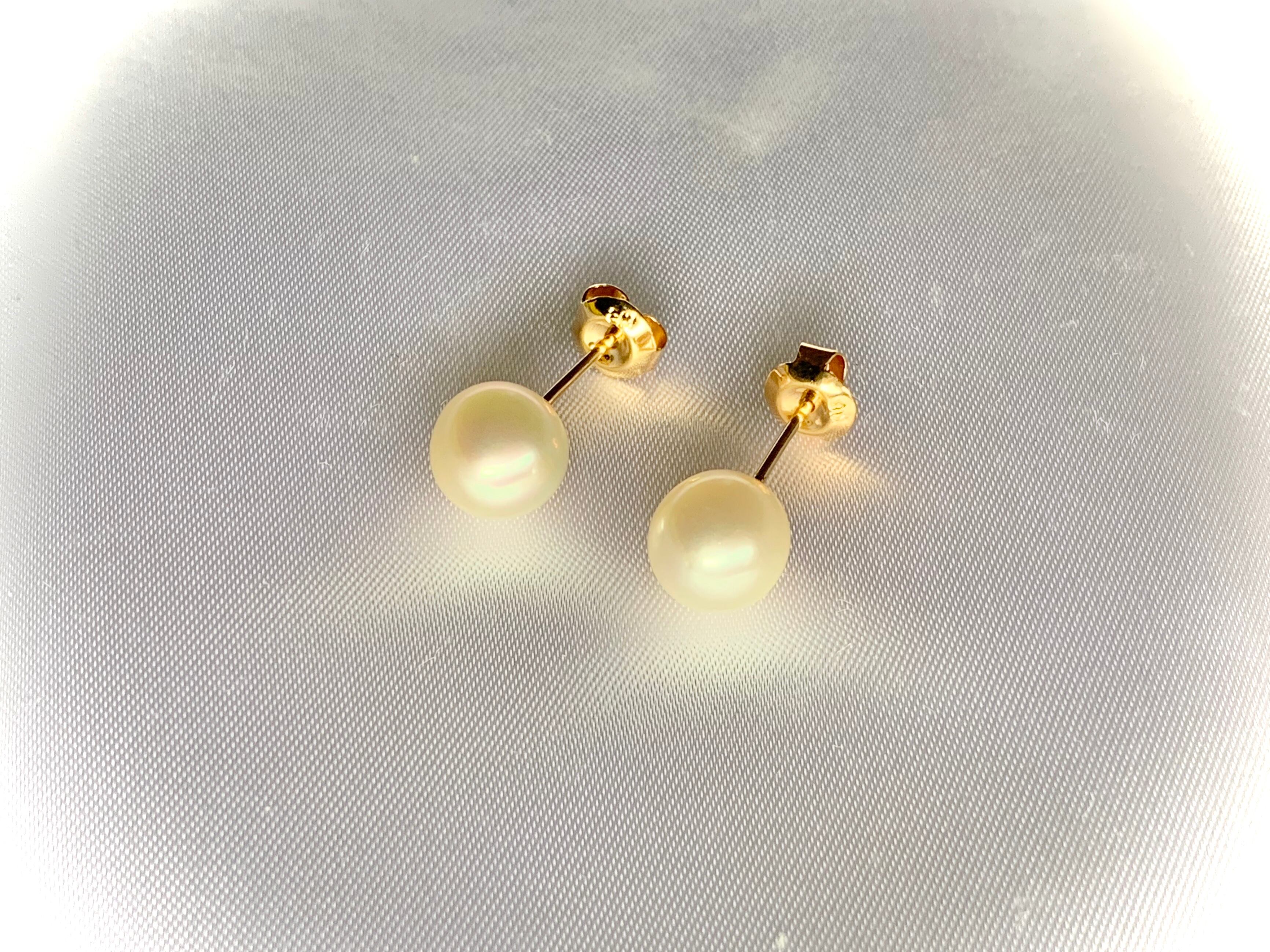 Large size Akoya pearl gold earrings.