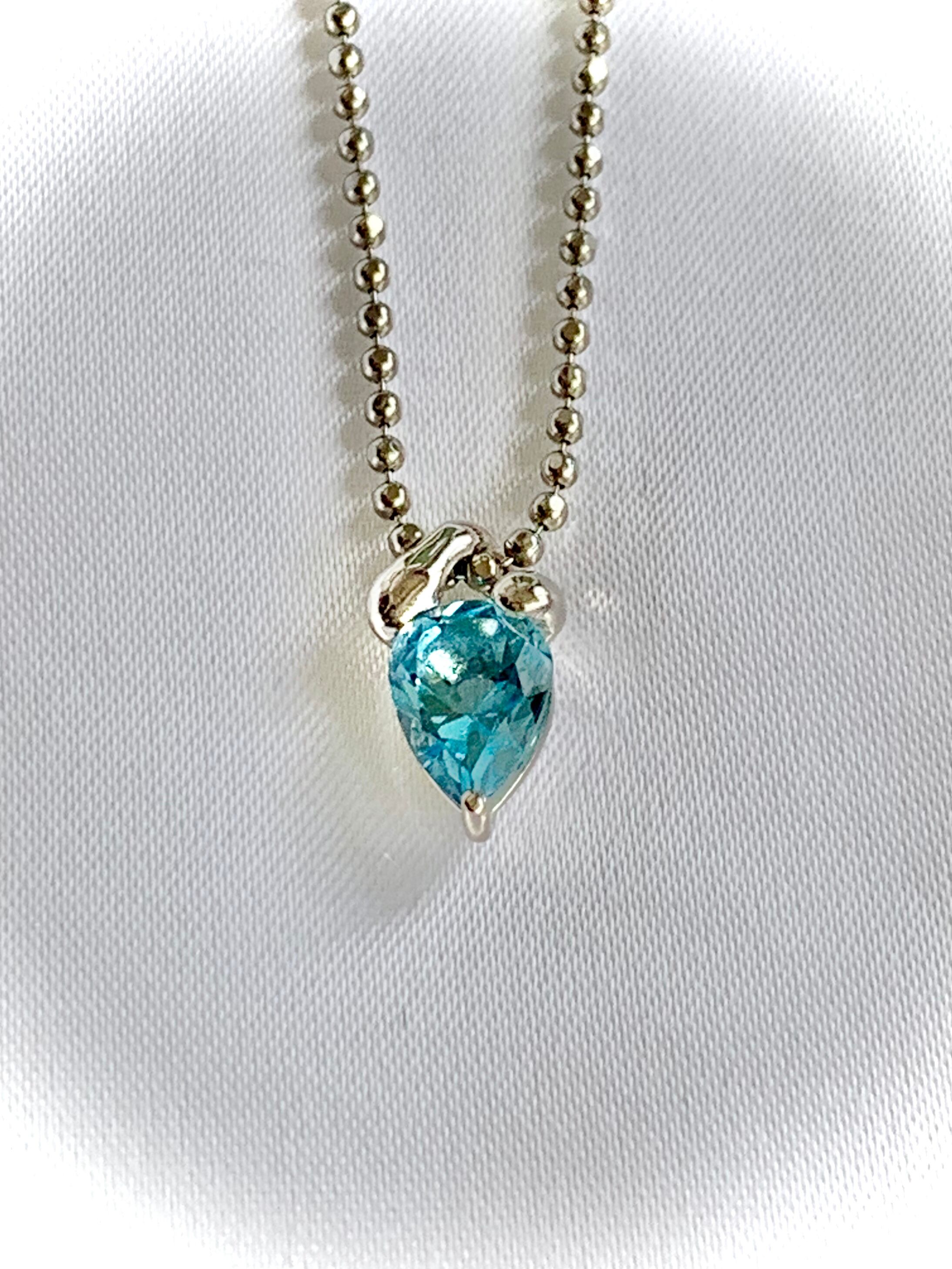 キラキラ光るターコイズブルーがとても綺麗なアクアマリン。水色すぎず、青色すぎず、ブルー系なのに暖かみのある不思議なカラーが胸元を爽やかに色付けてくれそうです。